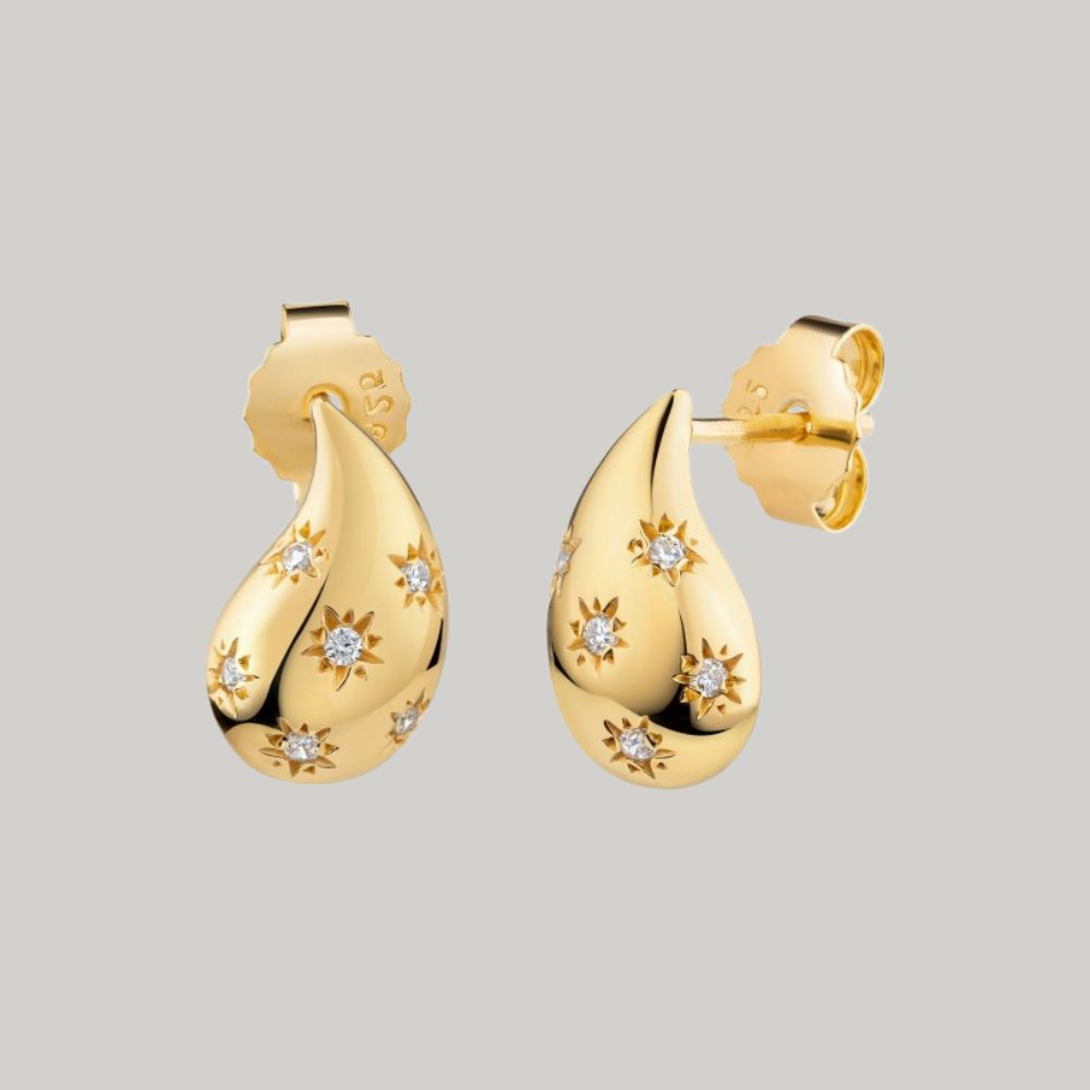 925er Sterling Silber Ohrringe, Ketten Armbänder und Ringe mit einer 18-Karat Mehrfachvergoldung versehen, garantieren sowohl Langlebigkeit als auch höchste Qualität. Unsere Ohrringe sind garantiert wasserfest & nickelfrei. Das gilt für allen Schmuck von AGVA Studio.